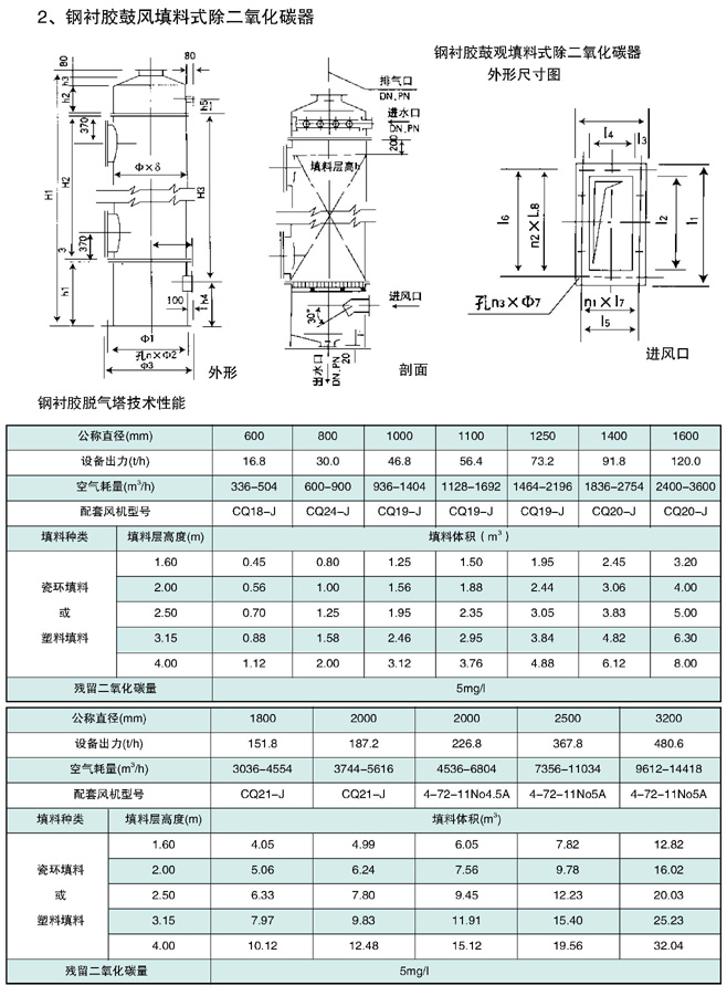 鼓風填料式除二氧化碳脫氣塔